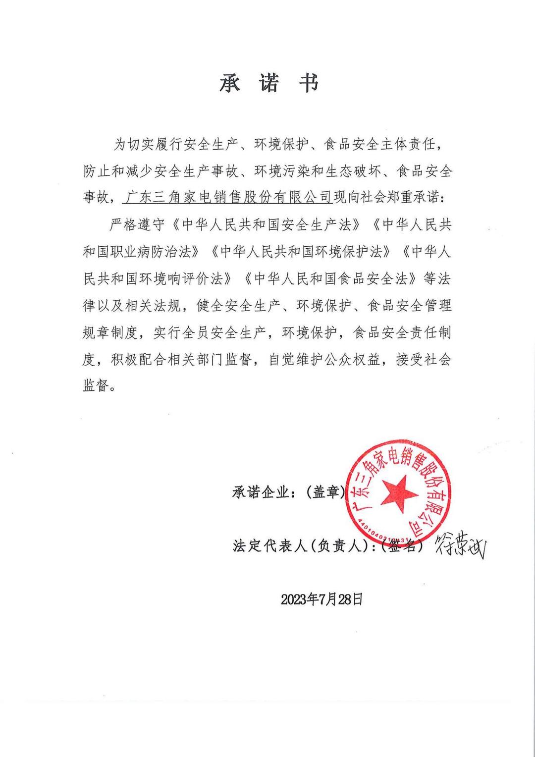 上一篇 : 关于广东三角家电销售股份有限公司切实履行安全生产、环境保护、食品安全主体责任的公告